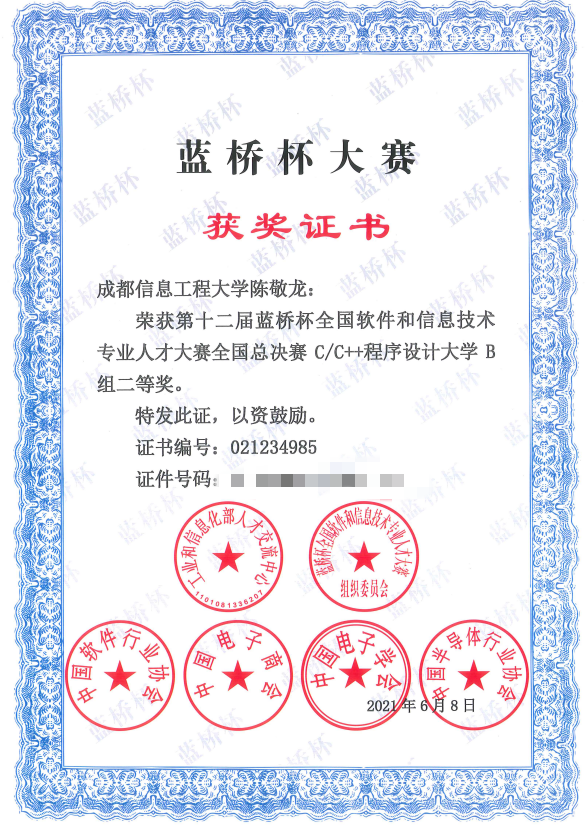 第十二届“蓝桥杯”全国软件和信息技术专业人才大赛全国总决赛于近日落下帷幕。来自全国 31 个省市自治区 1300 多所高校的 7.5 万余名选手报名参加了个人赛的角逐。我院参赛学生通过精心准备,克服重重困难,付出诸多努力,一路过关斩将在本次比赛中获得了二等奖、三等奖以及优秀奖各一项的佳绩。